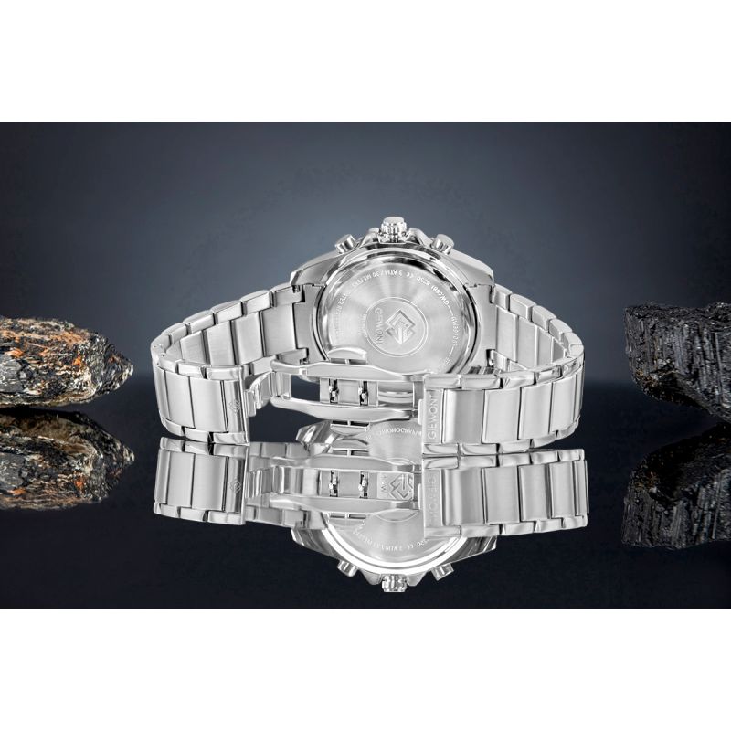 Das Stahlarmband ist mit viel Liebe zum Detail gefertigt und passt perfekt. Es verleiht der Uhr ein solides und professionelles Aussehen und sorgt gleichzeitig für hohen Tragekomfort. Sein Design bildet ein harmonisches Ganzes mit dem massiven Gehäuse und unterstreicht den maskulinen und entschlossenen Charakter des Modells. Die drehbare Lünette bietet eine von professionellen Sportuhren inspirierte Funktionalität und verstärkt den modernen Eindruck.