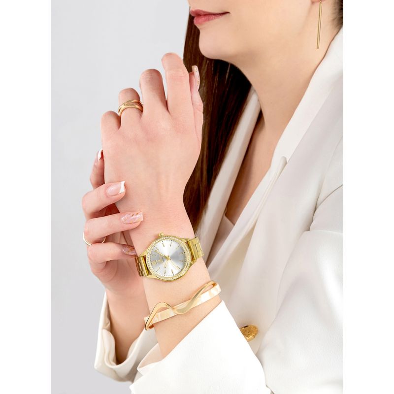 Das schlanke Gehäuse unterstreicht das filigrane Design und sorgt für einen eleganten Sitz am Handgelenk. Das Edelstahlarmband rundet den Look ab und garantiert hohen Tragekomfort sowie eine elegante Optik, die sowohl für den Alltag als auch für besondere Anlässe geeignet ist.