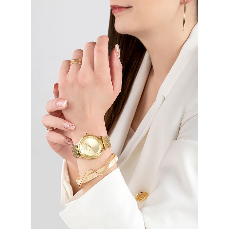 Diese Uhr besticht durch ihren schmuckartigen Charakter, der Minimalismus mit subtilem Glanz vereint. Zart, modern und elegant – perfekt als dezentes Accessoire, das den Stil unterstreicht, ohne unnötigen Schnickschnack zu benötigen.