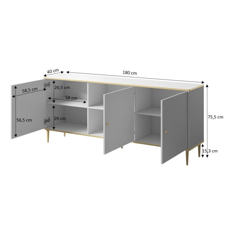 4. GLAMOUR Kommode 180x40x75,5 cm, Mattschwarz + Gold