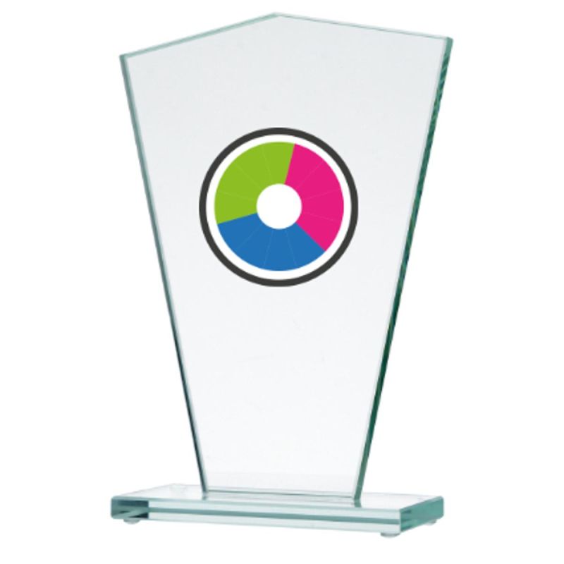 Glastrophäe mit LuxorJet-Farbdruck, Höhe 22 cm