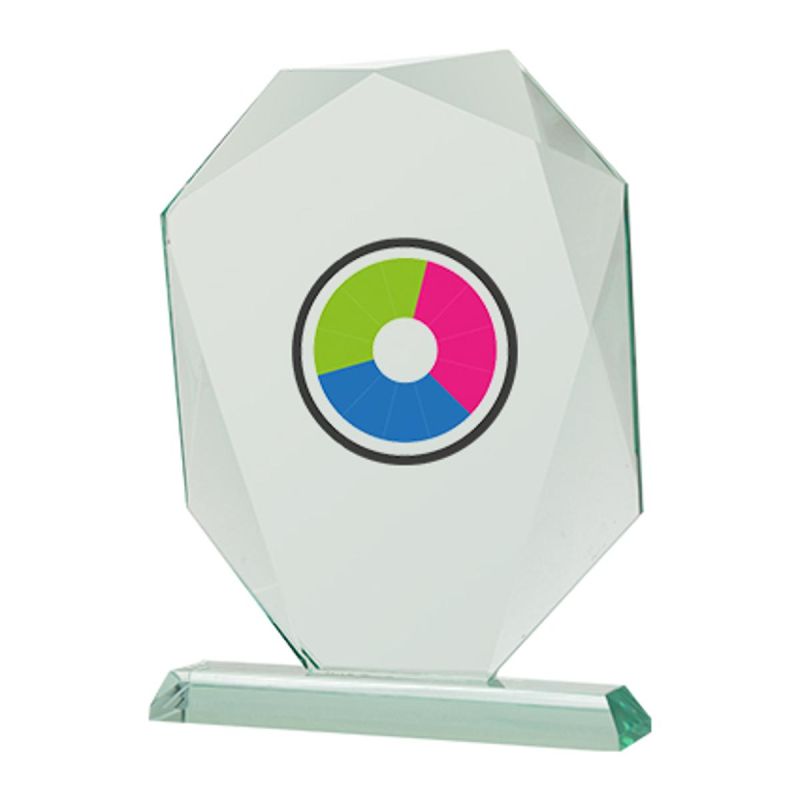 Glastrophäe mit LuxorJet-Farbdruck und Etui, Höhe 24 cm