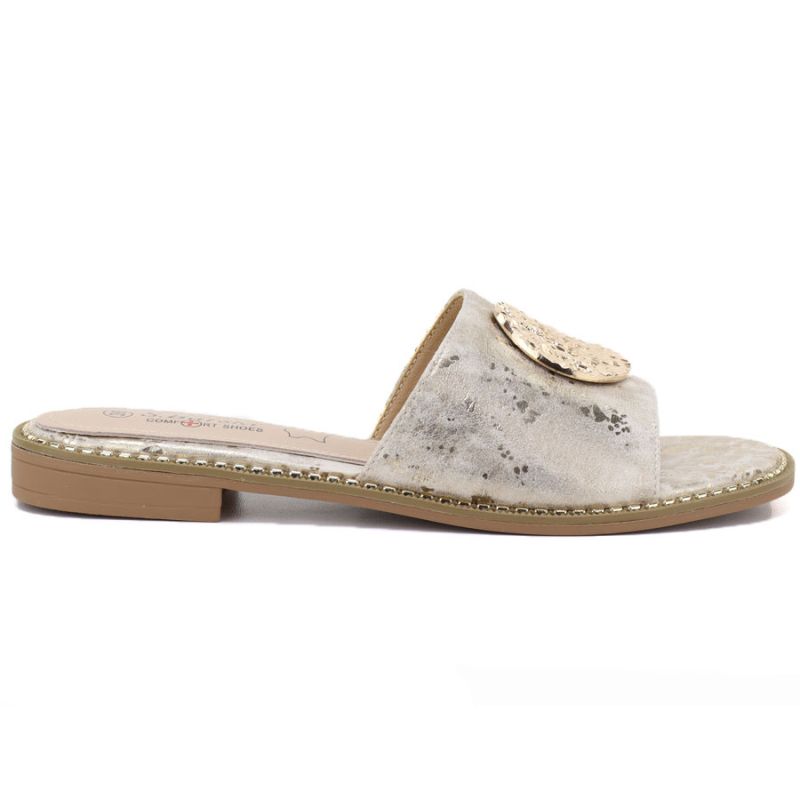 Goldfarbene Damen-Flip-Flops aus Leder, S.Barski KV61-6034