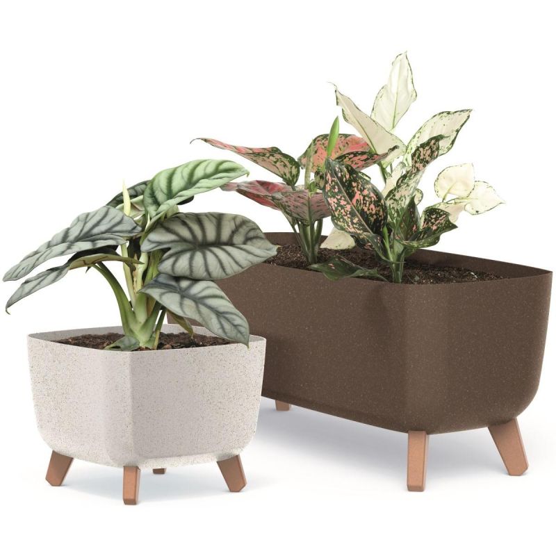 Dieser originelle Blumentopf aus der ECO Wood Serie besteht aus einem Material, bei dem Holz bis zu 33 % der Zusammensetzung ausmacht, wodurch er umweltfreundlicher ist.