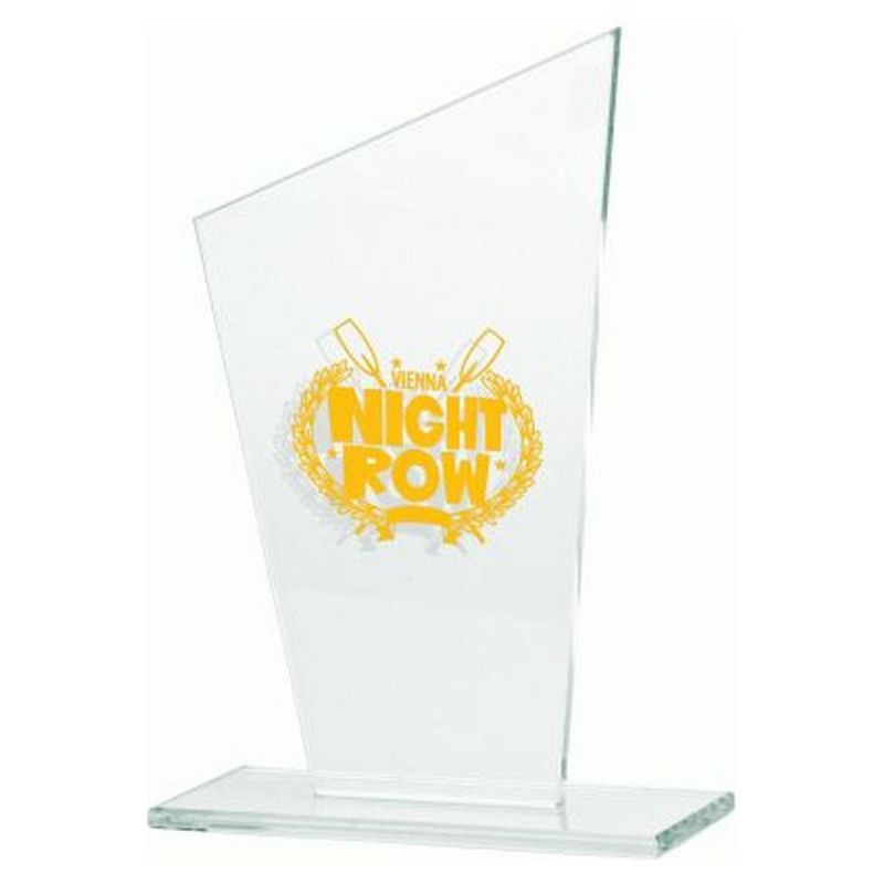 Gravierte Glastrophäe + Farbfüllung