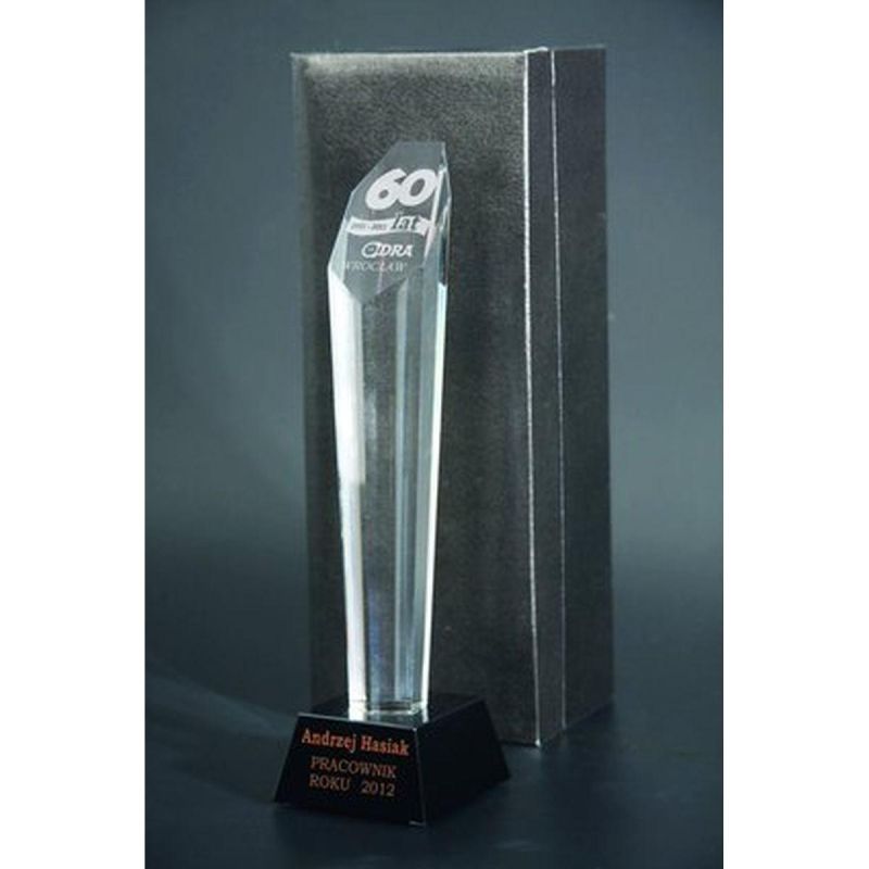 2. Gravierte Glastrophäe mit Vitrine + Farbfüllung