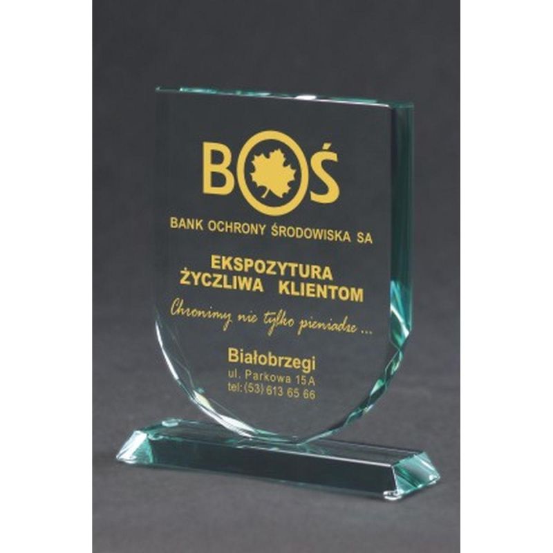 2. Gravierte Glastrophäe mit Vitrine + Farbfüllung
