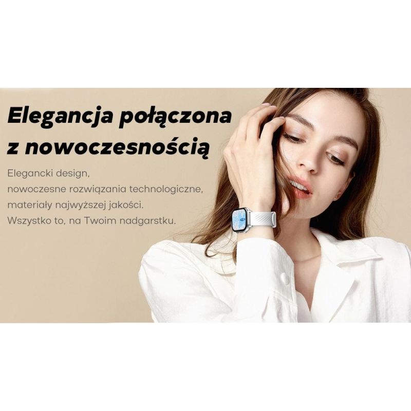 Eine moderne Smartwatch, die intelligente Technologien mit außergewöhnlichem Design vereint: Bluetooth-Anrufe, Sprachassistent, fortschrittliche Gesundheitsüberwachung und moderne Sensoren für präzise Trainingsergebnisse. Das brillante, kontrastreiche Display stellt alle Informationen klar und eindrucksvoll dar. Dank Sprachassistent und intelligenter Benachrichtigungen sind Sie immer auf dem Laufenden – egal ob beim Training, bei der Arbeit oder beim Entspannen nach einem langen Tag. Zahlreiche Sportmodi und Sensoren wie Herzfrequenzmesser, Beschleunigungsmesser und Schlafüberwachung liefern präzise Trainings- und Erholungsdaten. Unterwegs können Sie Ihr Smartphone getrost in der Tasche lassen – Bluetooth-Anrufe, integriertes Mikrofon und Lautsprecher ermöglichen Ihnen, Anrufe direkt am Handgelenk entgegenzunehmen – komfortabel und diskret. Der leistungsstarke 280-mAh-Akku bietet bis zu 5 Tage intensive Nutzung ohne Aufladen.