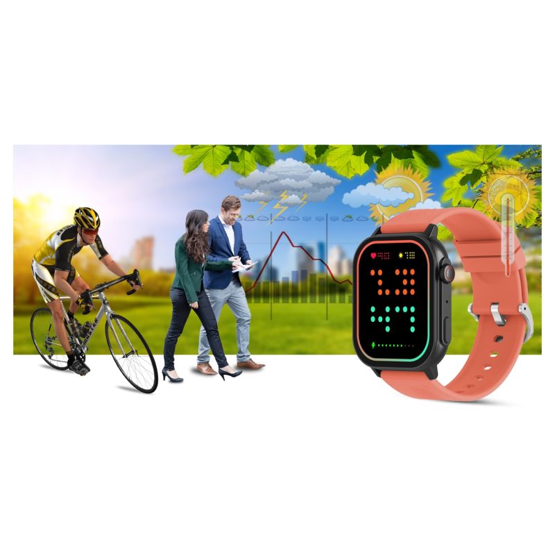 Sobald die Smartwatch mit der App verbunden ist, werden die Wetterdaten angezeigt. Mit nur einem Blick auf die Smartwatch wissen Sie nun, wie das Wetter in naher Zukunft wird. Dank der Wetterinformationen auf Ihrer Smartwatch können Sie Ihre Aktivitäten besser planen und sich dem Wetter entsprechend kleiden!