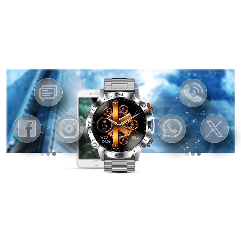 Mit dieser Smartwatch verpassen Sie nichts Wichtiges mehr. Ab sofort werden SMS, Facebook, Twitter, WhatsApp, Skype usw. in Echtzeit auf dem Zifferblatt angezeigt . Sie müssen Ihre Arbeit oder Aktivitäten nicht unterbrechen – heben Sie einfach Ihren Arm, um die Nachrichten zu sehen!