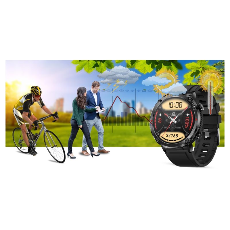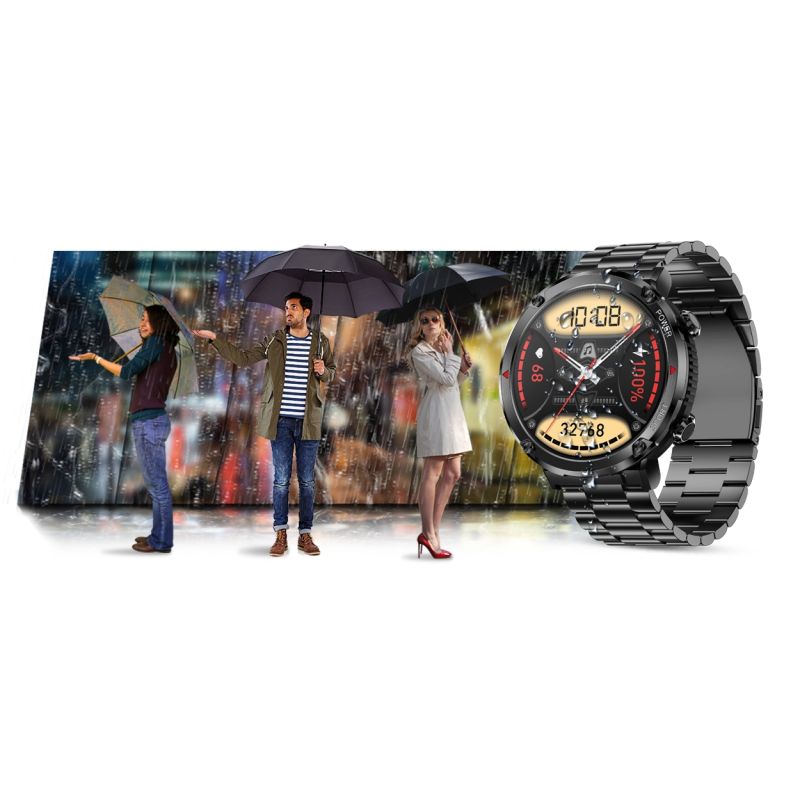 Gute Ausrüstung sollte mit ihrem Besitzer mithalten können. Deshalb ist diese Smartwatch nach IP67 wasserdicht. Sie ist gegen Spritzwasser und leichten Wasserkontakt geschützt. Auch gegen leichten Staub und Schmutz aus der Luft ist sie resistent. Die Smartwatch sollte nicht beim Tauchen, in der Sauna oder im Kontakt mit Salzwasser, heißem oder eiskaltem Wasser getragen werden.