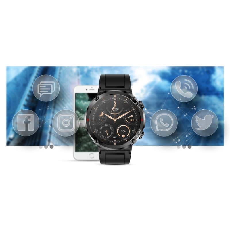 Mit dieser Smartwatch verpassen Sie nichts Wichtiges mehr. Ab sofort werden SMS, Facebook, Twitter, WhatsApp, Skype usw. in Echtzeit auf dem Zifferblatt angezeigt . Sie müssen Ihre Arbeit oder Aktivitäten nicht unterbrechen – heben Sie einfach Ihren Arm, um die Nachrichten zu sehen!