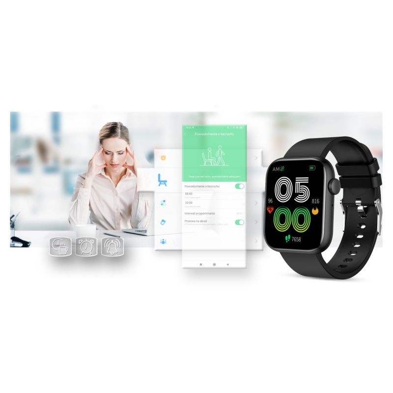 Dank des Sensors können Sie jederzeit Blutdruck, Herzfrequenz oder Sauerstoffsättigung (Sauerstoffgehalt im Blut) messen. Überwachen Sie Ihre Werte bei jeder körperlichen Aktivität. Ob beim Radfahren, Laufen oder einfach nur beim Arbeiten oder Entspannen – Ihre GRAVITY Smartwatch wird zu Ihrem persönlichen Assistenten und kümmert sich täglich um Ihre Gesundheit.