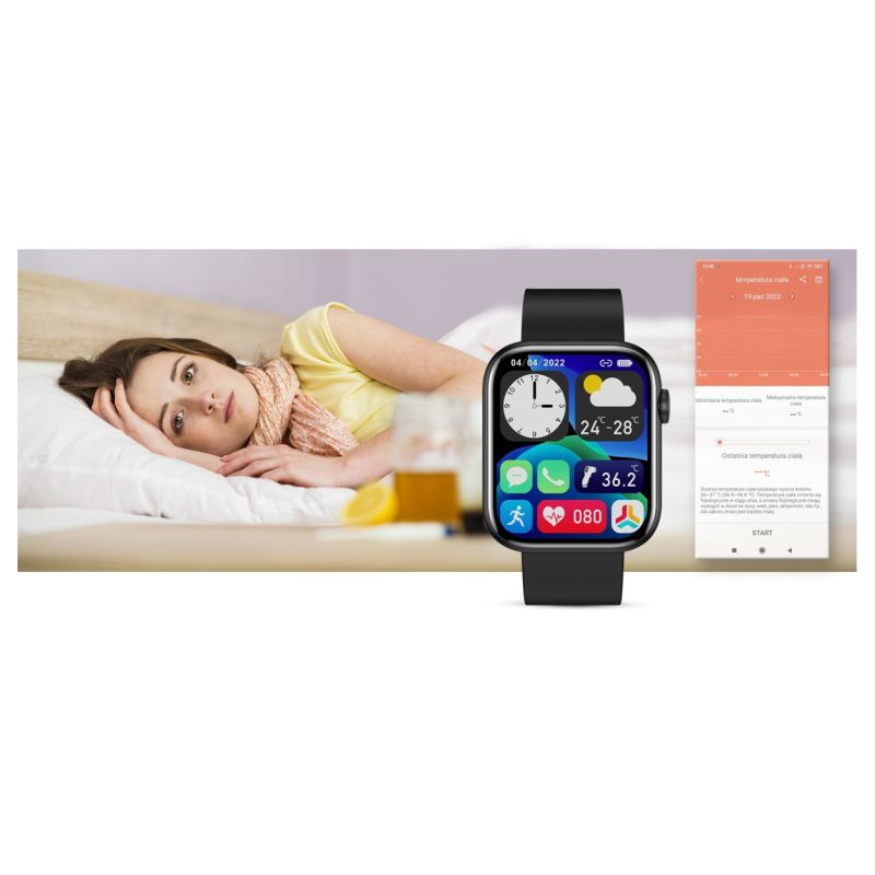 Dank eines hochwertigen Sensors ermöglicht Ihnen diese Smartwatch die Messung der Temperatur Ihres Körpers und Ihrer Haut.