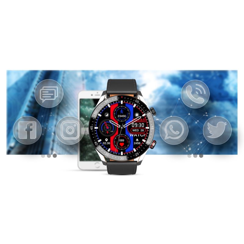 Mit dieser Smartwatch verpassen Sie nichts Wichtiges mehr. Ab sofort werden SMS, Facebook, Twitter, WhatsApp, Skype usw. in Echtzeit auf dem Zifferblatt angezeigt . Sie müssen Ihre Arbeit oder Aktivitäten nicht unterbrechen – heben Sie einfach Ihren Arm, um die Nachrichten zu sehen!