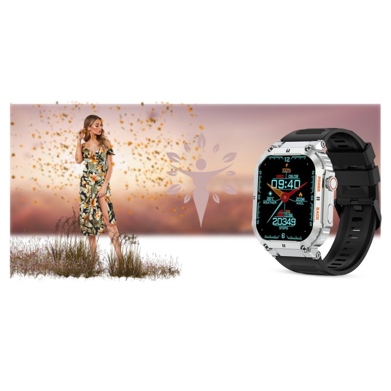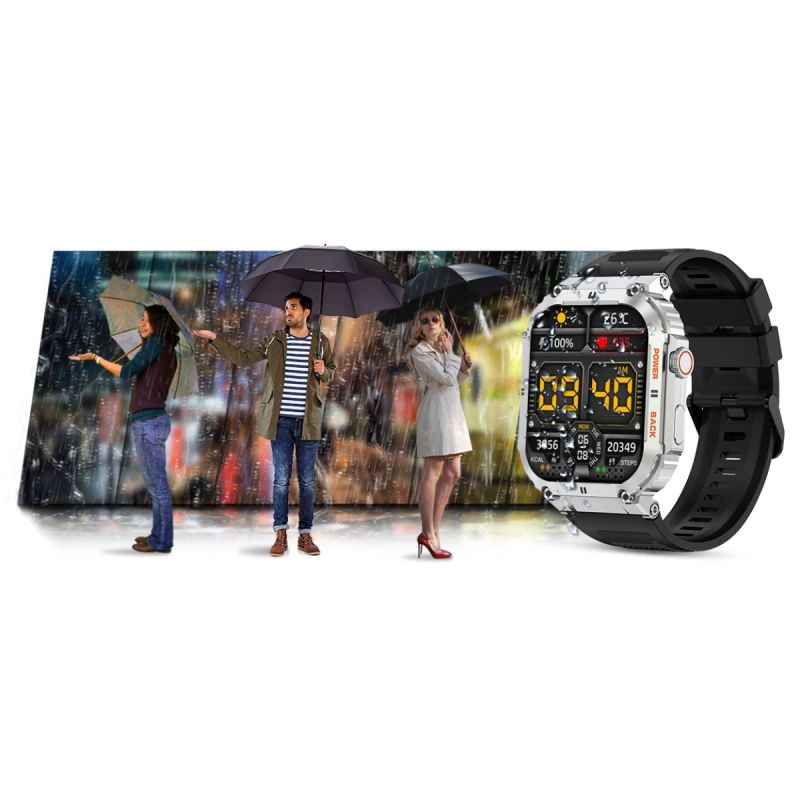 Gute Ausrüstung sollte mit ihrem Besitzer mithalten können. Deshalb ist diese Smartwatch nach IP67 wasserdicht. Sie ist gegen Spritzwasser und leichten Wasserkontakt geschützt. Auch gegen leichten Staub und Schmutz aus der Luft ist sie resistent. Die Smartwatch sollte nicht beim Tauchen, in der Sauna oder im Kontakt mit Salzwasser, heißem oder eiskaltem Wasser getragen werden.