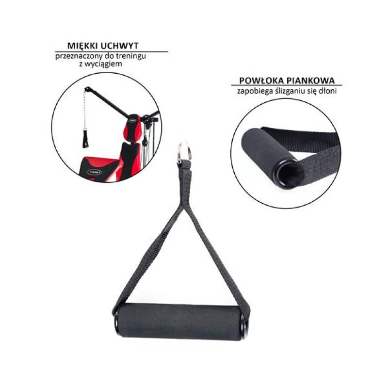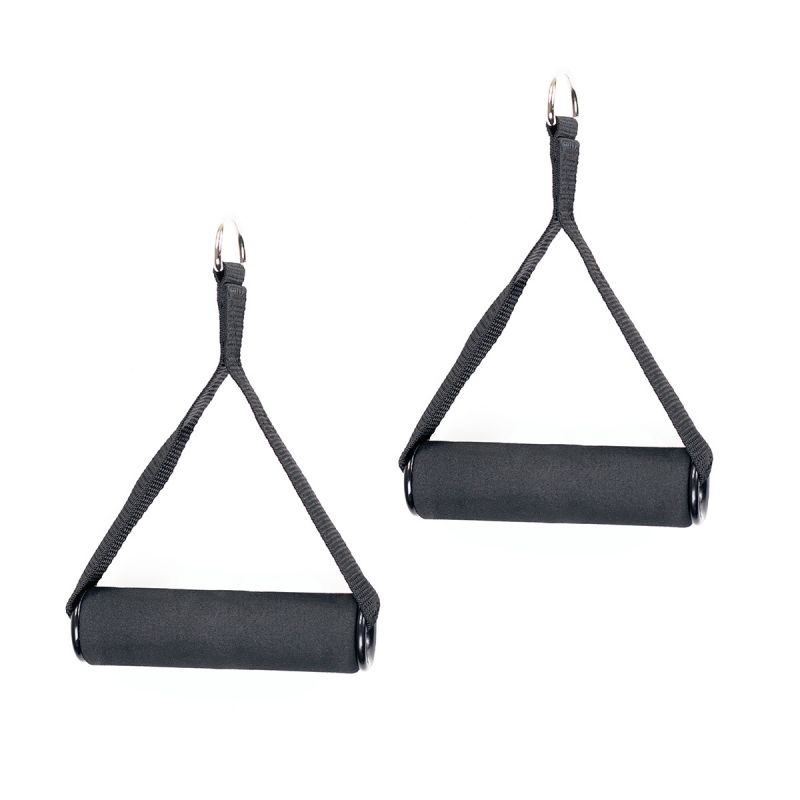 Schaumstoffgriffe sorgen für eine komfortable Trainingsausführung und beugen Schwielenbildung vor. Der weiche Griff sorgt zudem für einen automatisch festeren Griff und sorgt so für eine starke Beanspruchung der Unterarmmuskulatur während der Übung. Hochwertige Gurte verbinden die Griffe mit der Seilrolle und ermöglichen so das Training mit hoher Belastung.