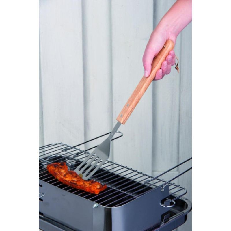 Ein Grillwender mit Holzgriff ist ein unverzichtbares Utensil, mit dem Sie Speisen effizient und schmackhaft auf dem Grill zubereiten können.