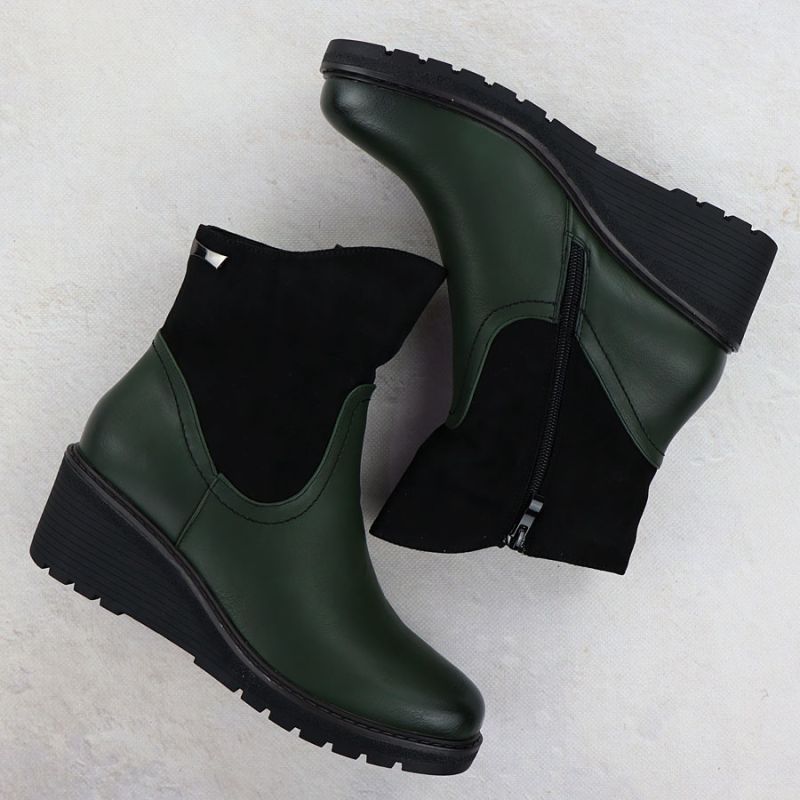 Diese eleganten Stiefeletten sind die neueste Kreation der renommierten Marke M.Daszyński. Gefertigt aus hochwertigem Öko-Wildleder und mit Fell gefüttert, passen sie perfekt zu jedem Outfit und garantieren höchsten Tragekomfort.