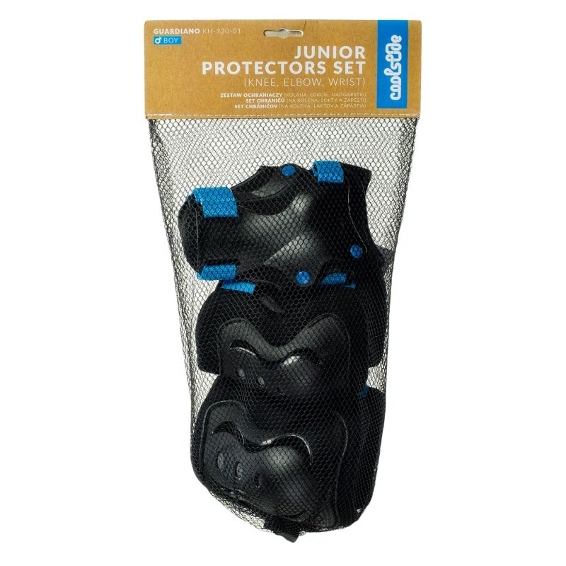 SCHUTZSET GRÖSSE: S, M, L MATERIALZUSAMMENSETZUNG: KO86 STOFF, SCHAUM, PE HOCHSCHLAGFEST SPEZIFIKATION: - 2 KNIESCHÜTZER - 2 ELLBOGENSCHÜTZER - 2 HANDGELENKSCHÜTZER