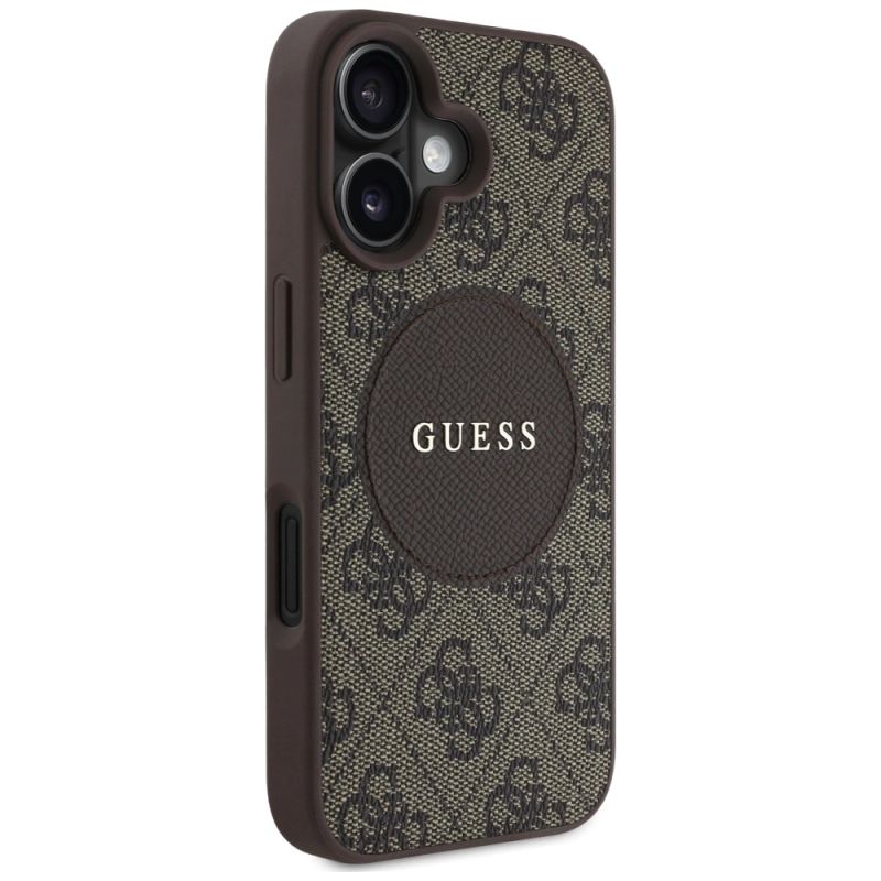 Sammlung Guess 4G Circle Classic Logo MagSafe Typ Hardcase Material TPU / PC / Öko-Leder Farbe Braun Kompatibilität iPhone 16 6,1"| Name | Details |