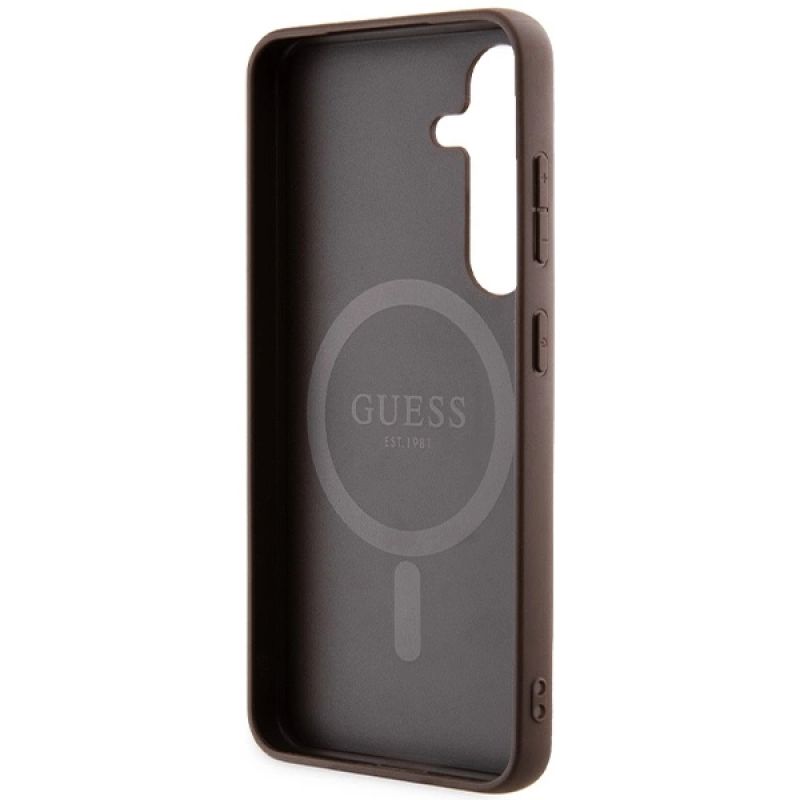 Guess 4G Collection Leder Metall Logo MagSafe Hülle für Samsung Galaxy S24 – Braun