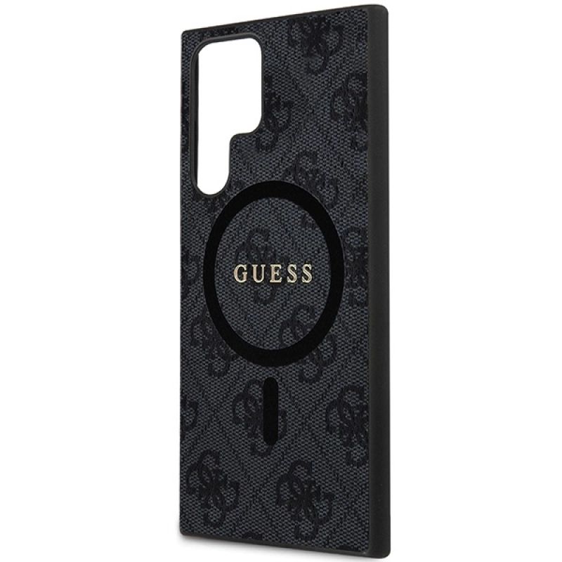 Guess 4G Collection Leder-Metall-Logo MagSafe-Hülle für Samsung Galaxy S24 Ultra – Schwarz