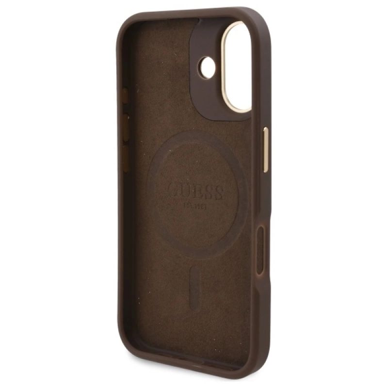 6. Guess 4G Logo Plate MagSafe-Hülle für iPhone 16 – braun