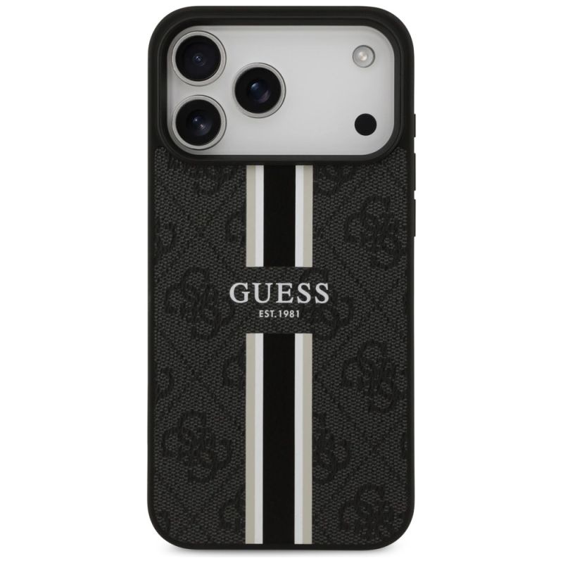 Guess 4G MagSafe-Hülle mit Printstreifen für iPhone 17 Pro Max – Schwarz