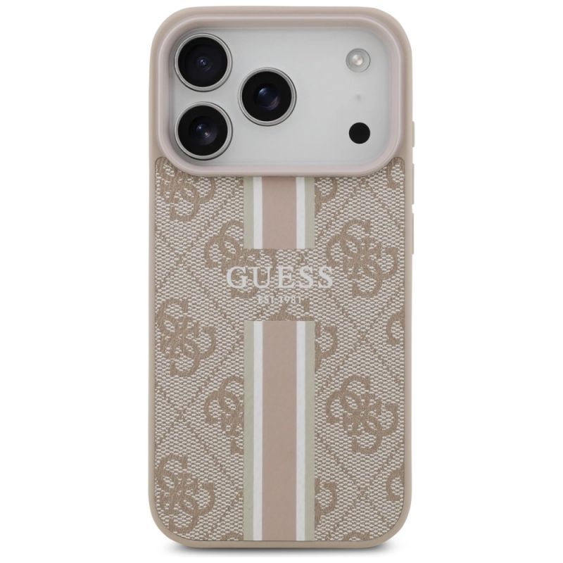 Guess 4G MagSafe-Hülle mit Streifenmuster für iPhone 17 Pro – Pink