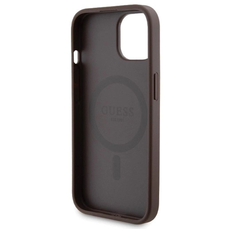 Guess 4G Metal Logo Hüllenset für iPhone 15 + 5000 mAh MagSafe Powerbank – Braun