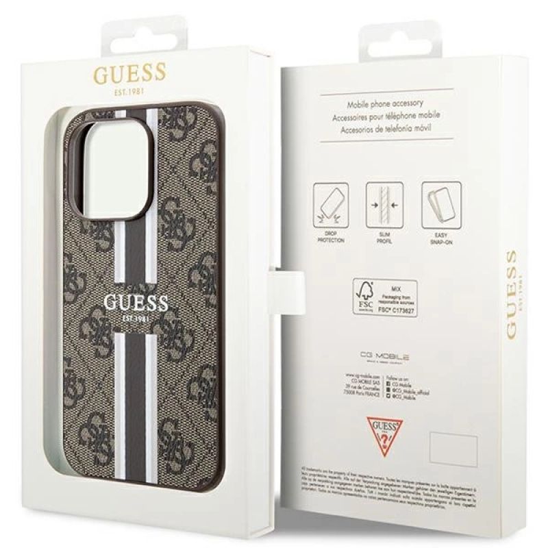 Guess 4G Printed Stripes MagSafe-Hülle für iPhone 15 Pro – braun