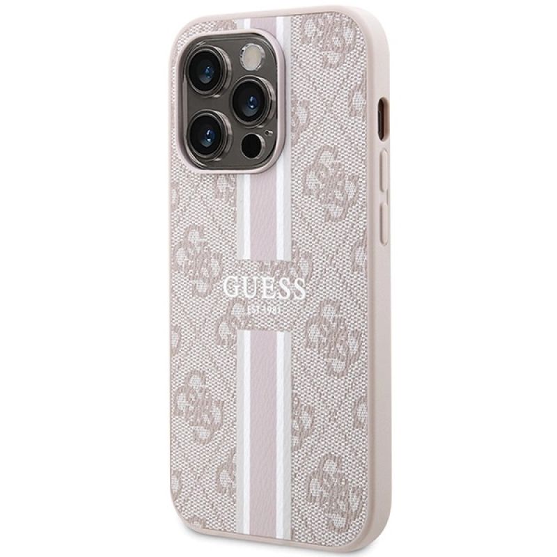 Guess 4G Printed Stripes MagSafe-Hülle für iPhone 15 Pro – Rosa
