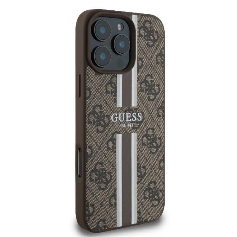 Guess 4G Printed Stripes MagSafe-Hülle für iPhone 16 Pro – braun