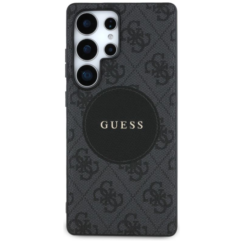Guess 4G Round Patch Classic Logo MagSafe Hülle für Samsung Galaxy S25 Ultra schwarz