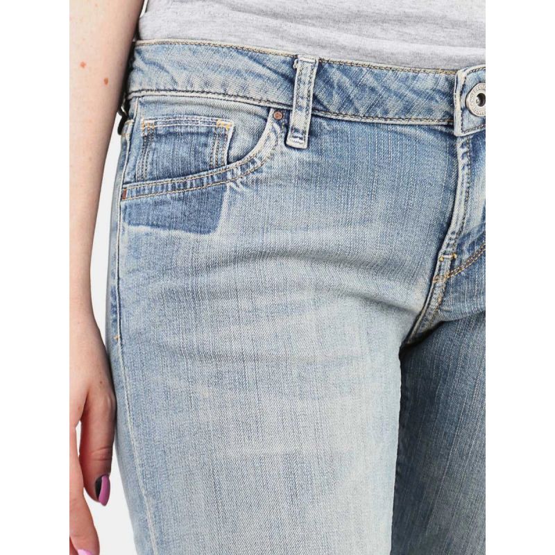 Die Guess Damenjeans haben eine niedrige, normale Taille und schmal zulaufende Beine mit Reißverschluss. Sie verfügen über einen Reißverschluss und einen Knopfverschluss. Am hinteren Bund befindet sich ein markanter Guess-Logo-Patch aus Metall.