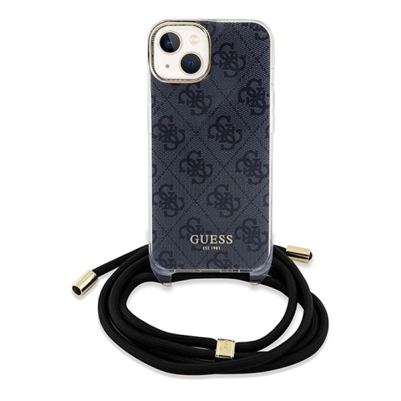 Guess Crossbody Cord 4G Print Hülle für iPhone 15/14/13 – Schwarz
