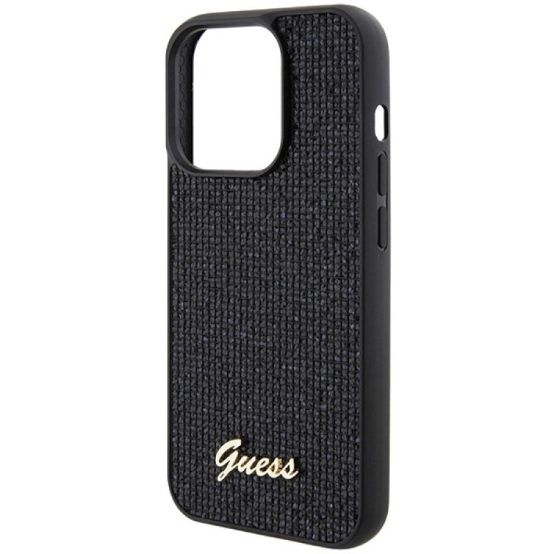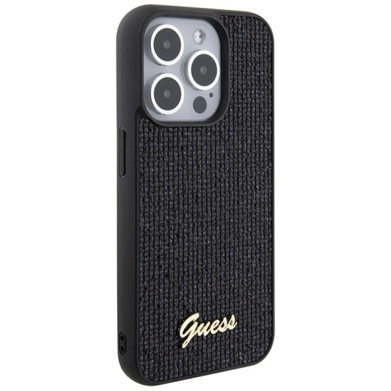 Guess Disco Metal Script Hülle für iPhone 15 Pro – Schwarz