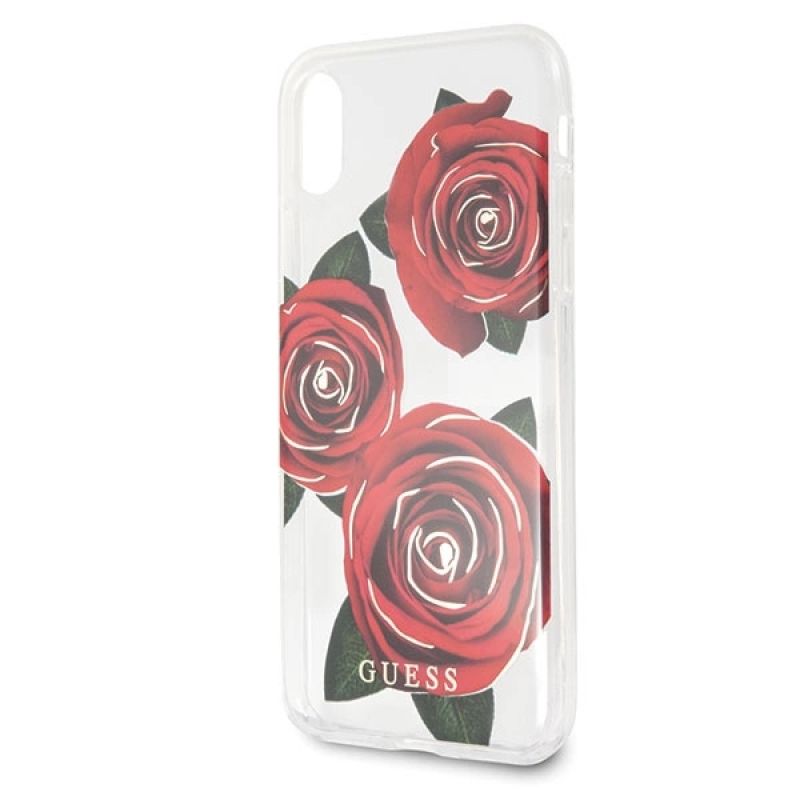 Guess Flower Desire Rote Rose iPhone X Hülle - Transparent