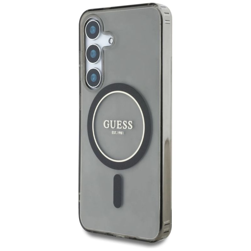 Guess Glitter Circle Classic Logo MagSafe Hülle für Samsung Galaxy S25 schwarz