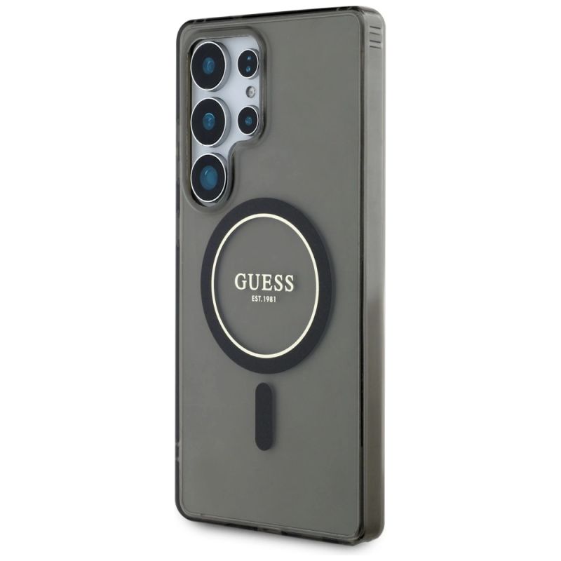 Guess Glitter Circle Classic Logo MagSafe Hülle für Samsung Galaxy S25 Ultra schwarz