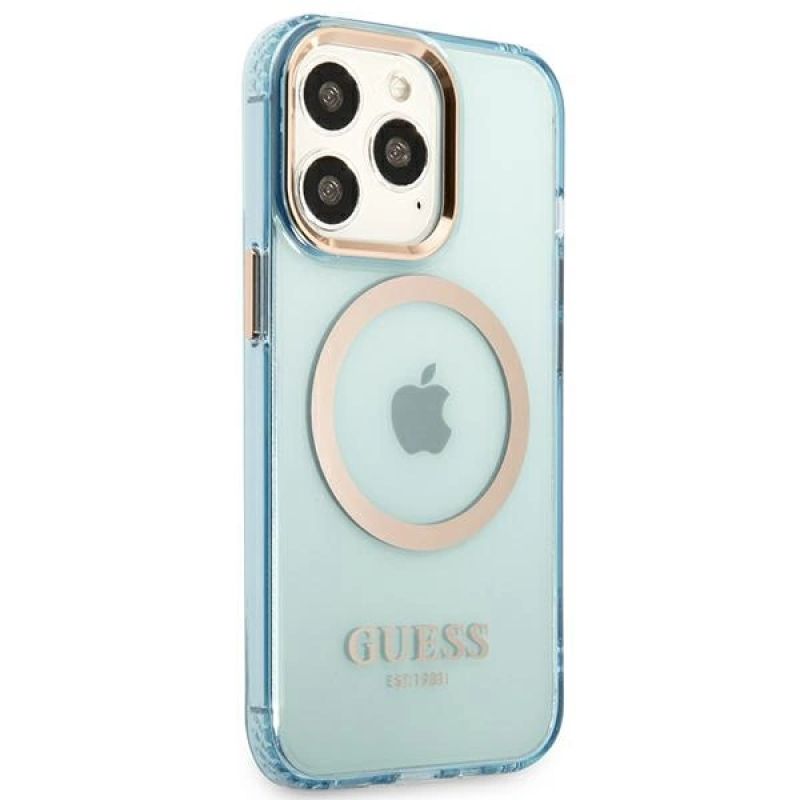 Guess Gold Outline Translucent MagSafe Hülle für iPhone 13 Pro / iPhone 13 – Blau