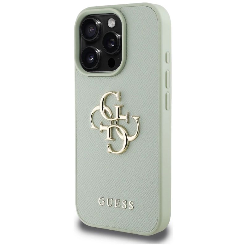Guess Grained Big 4G Logo Small Classic Logo Hülle für iPhone 16 Pro - Grün