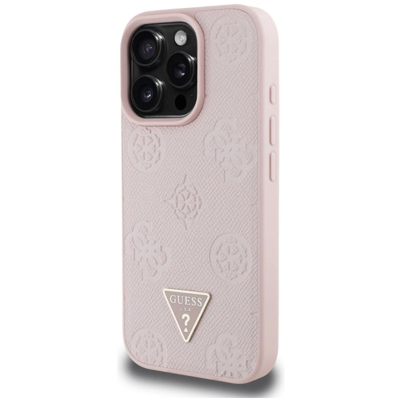 Guess Grained Hot Stamp Peony Triangle Logo MagSafe iPhone 16 Pro Hülle - Rosa
