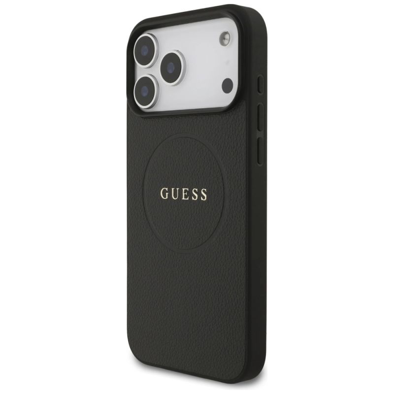 Guess Grained Ring MagSafe Hülle für iPhone 17 Pro Max - Schwarz