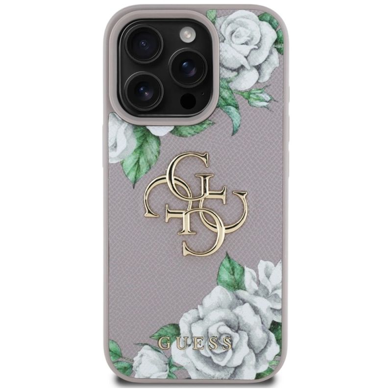 Guess Grained Roses Big 4G Logo iPhone 16 Pro Max Hülle - Lila