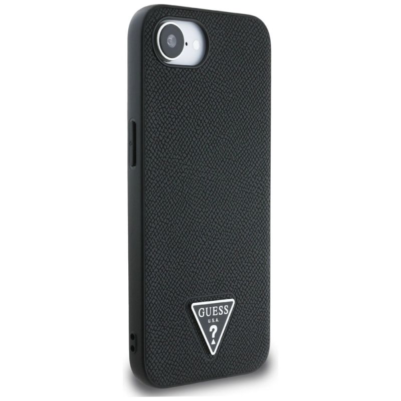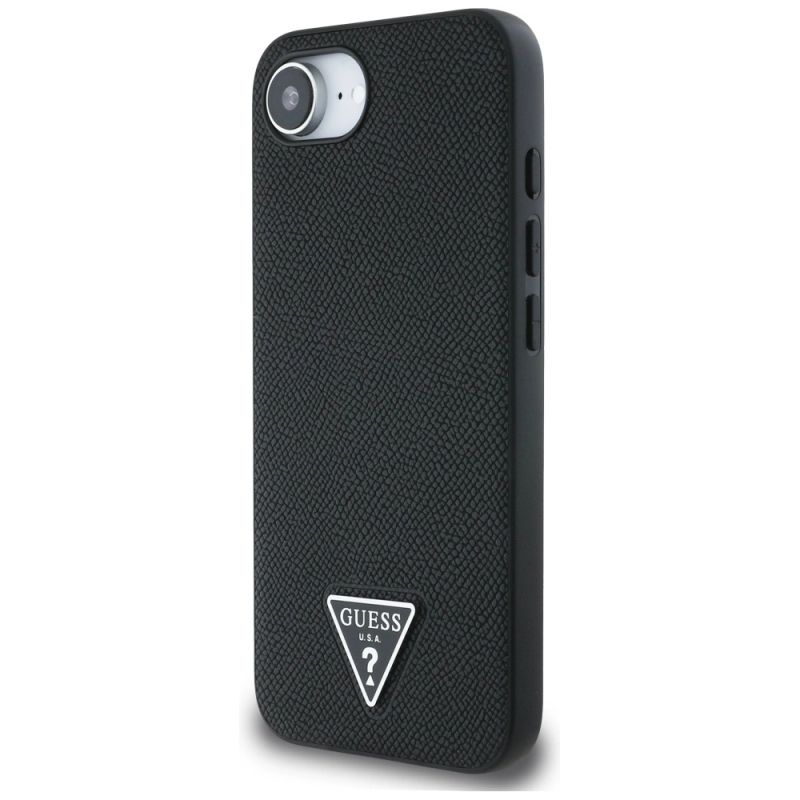 Guess Grained Triangle MagSafe iPhone 16e Hülle - Schwarz