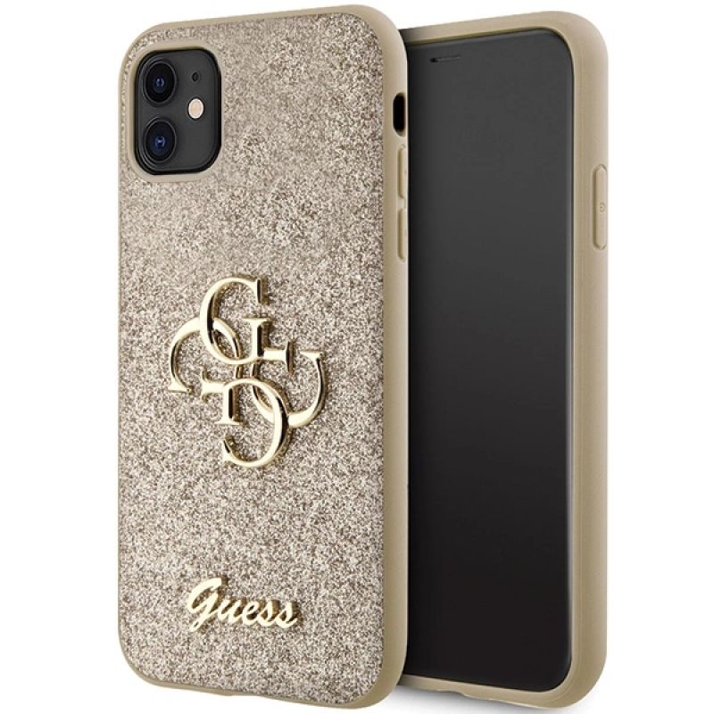 Guess GUHCN61HG4SGD Hülle für iPhone 11 / Xr – Gold Glitter Script Big 4G