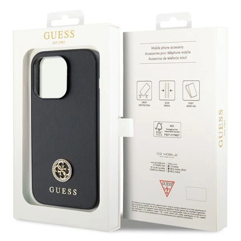 Guess GUHCP15LPS4DGPK iPhone 15 Pro 6,1" schwarz/schwarz Hardcase Strass Metall Logo