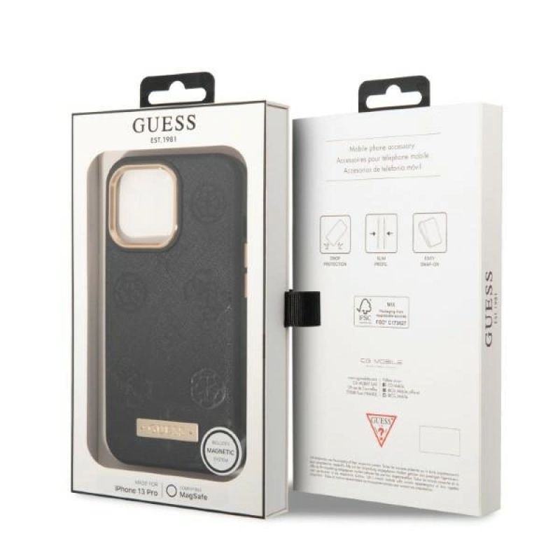Guess GUHMP13LSAPSTK iPhone 13 Pro / 13 6.1" schwarz/schwarz Hardcase Peony Logo Plate MagSafe
